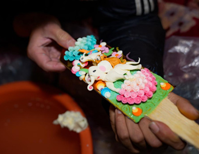 11月21日清晨,工作人员准备绑扎固定古船船体的物件。