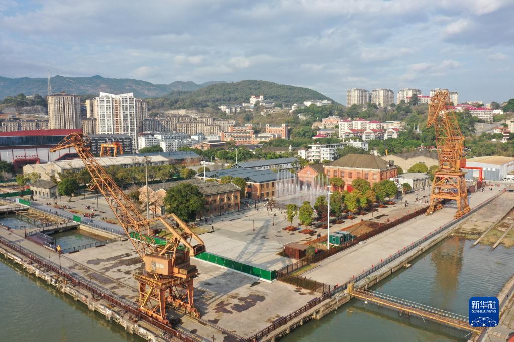 2月12日,中国船政文化城核心区船厂片区一角(无人机照片)。
