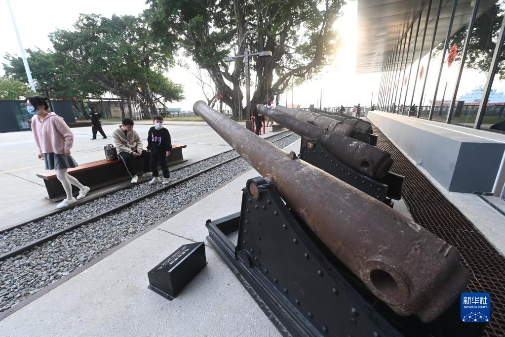 2月12日,在中国船政文化城核心区内展出的“克虏伯舰炮”。