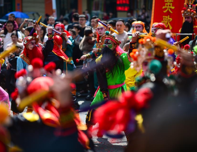 “傩”起源于远古的驱鬼逐疫仪式,就是让人渡过“难关”的意思。据悉,有关傩的活动可追溯至殷商时期。图为充满神秘色彩的傩戏表演。