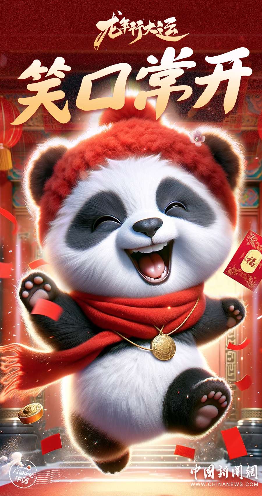 祥龙昂首,万象启新。当可爱熊猫变身送福使者,它们带着好运和祝福来到我们身边。让我们跟国宝熊猫“开开”“心心”一起,喜迎龙年,愿一切顺心如意,幸福安康!