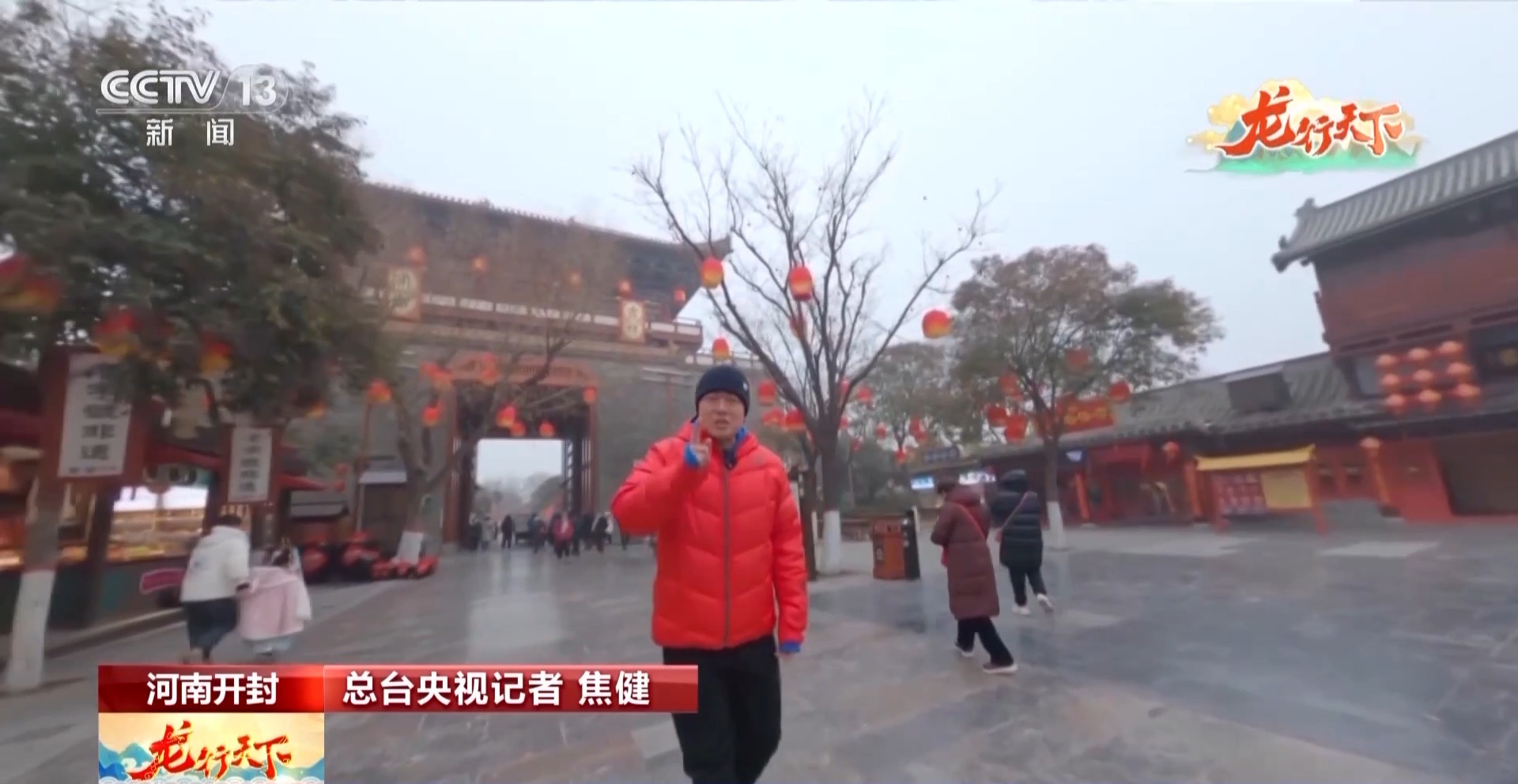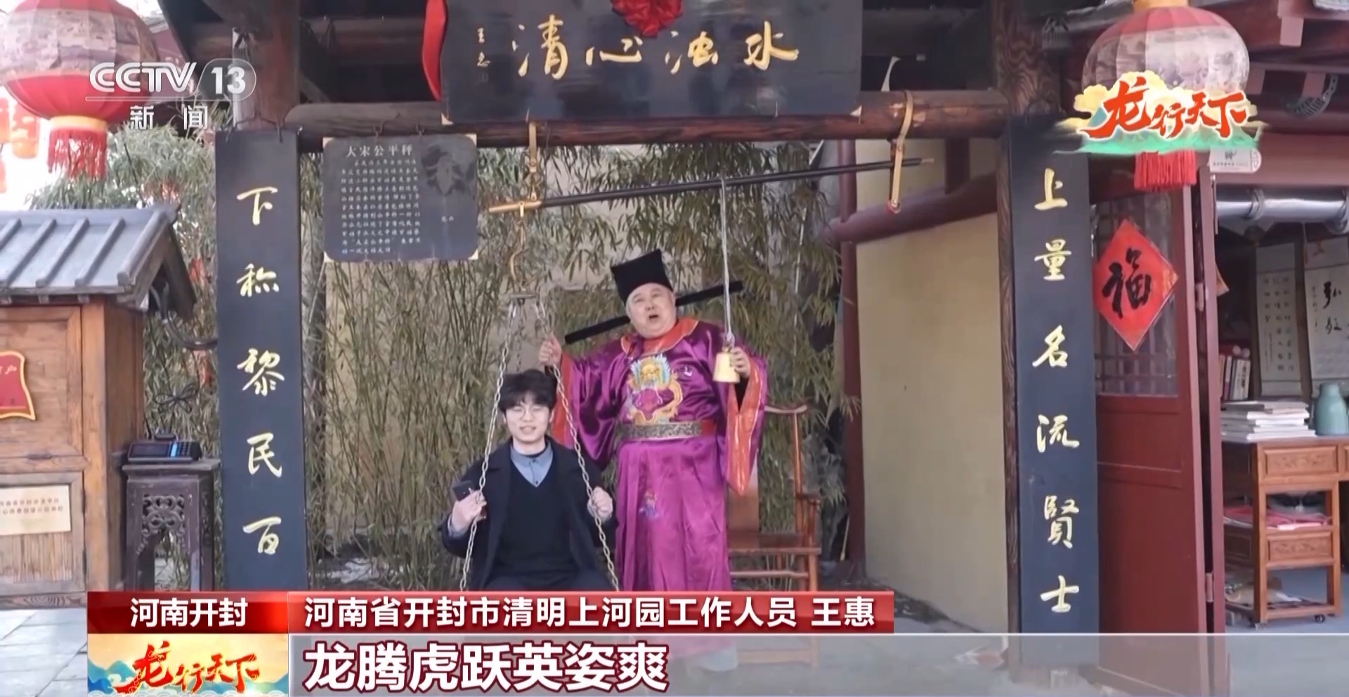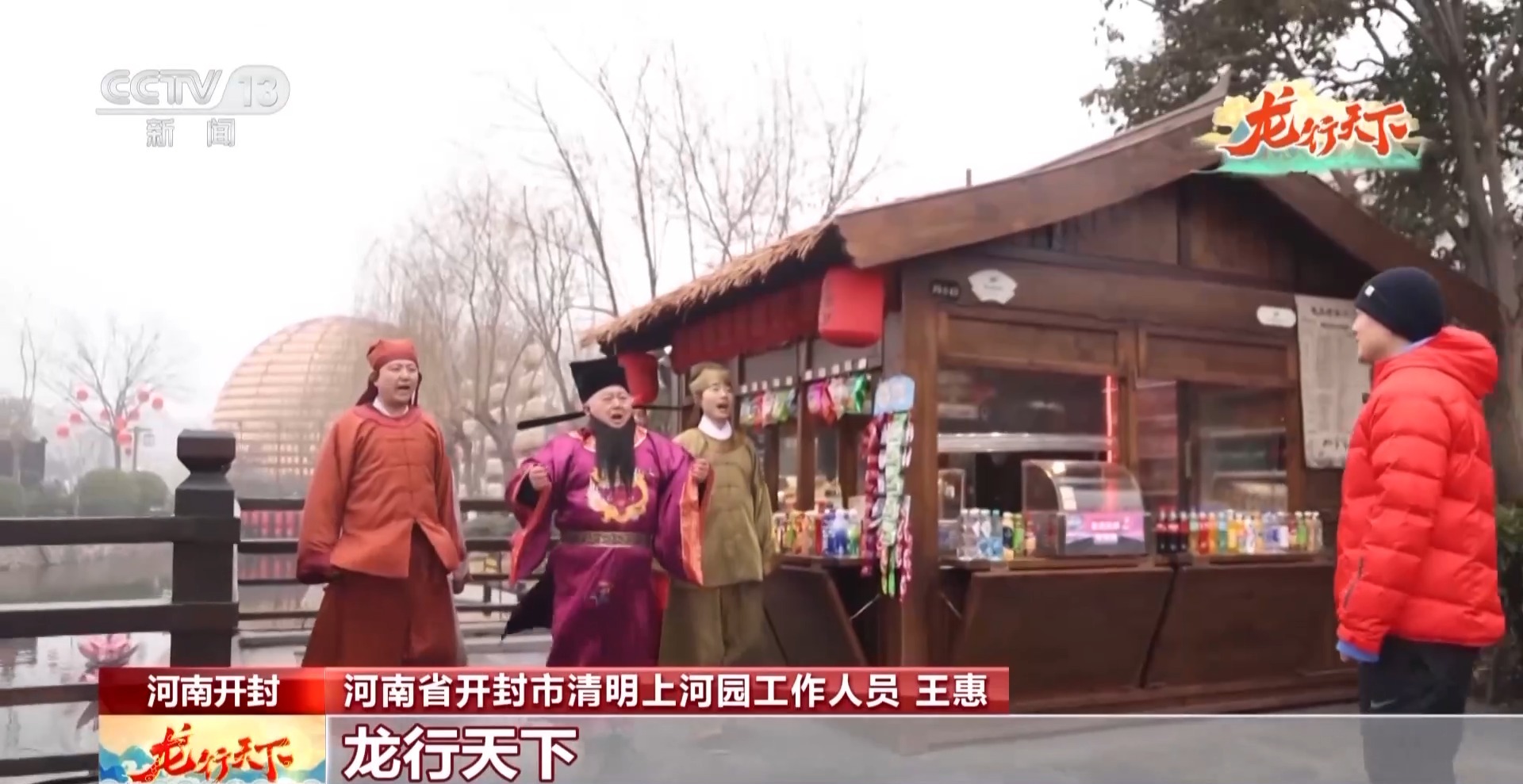 总台央视记者焦健:这里是河南省开封市,穿过这座城门,就是清明上河图中所描绘的宋代市井街巷。在这里不仅有机会与李清照共吟诗词,还有可能与包大人不期而遇。