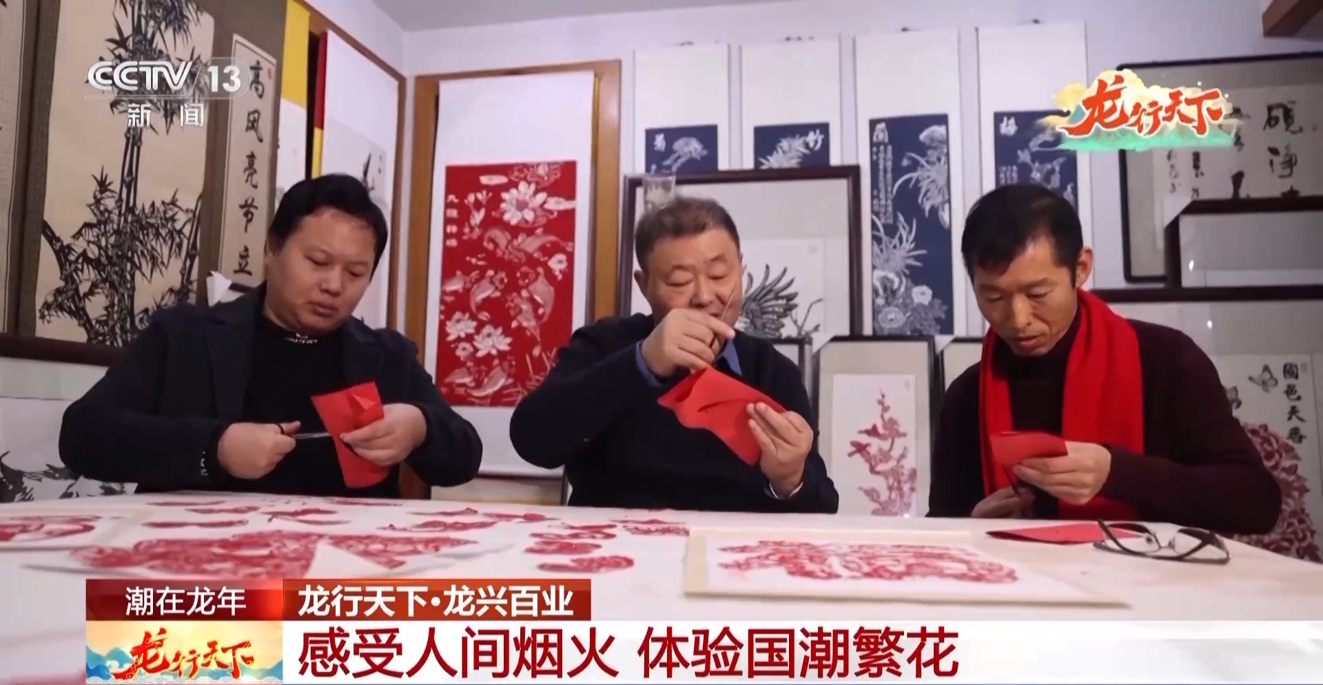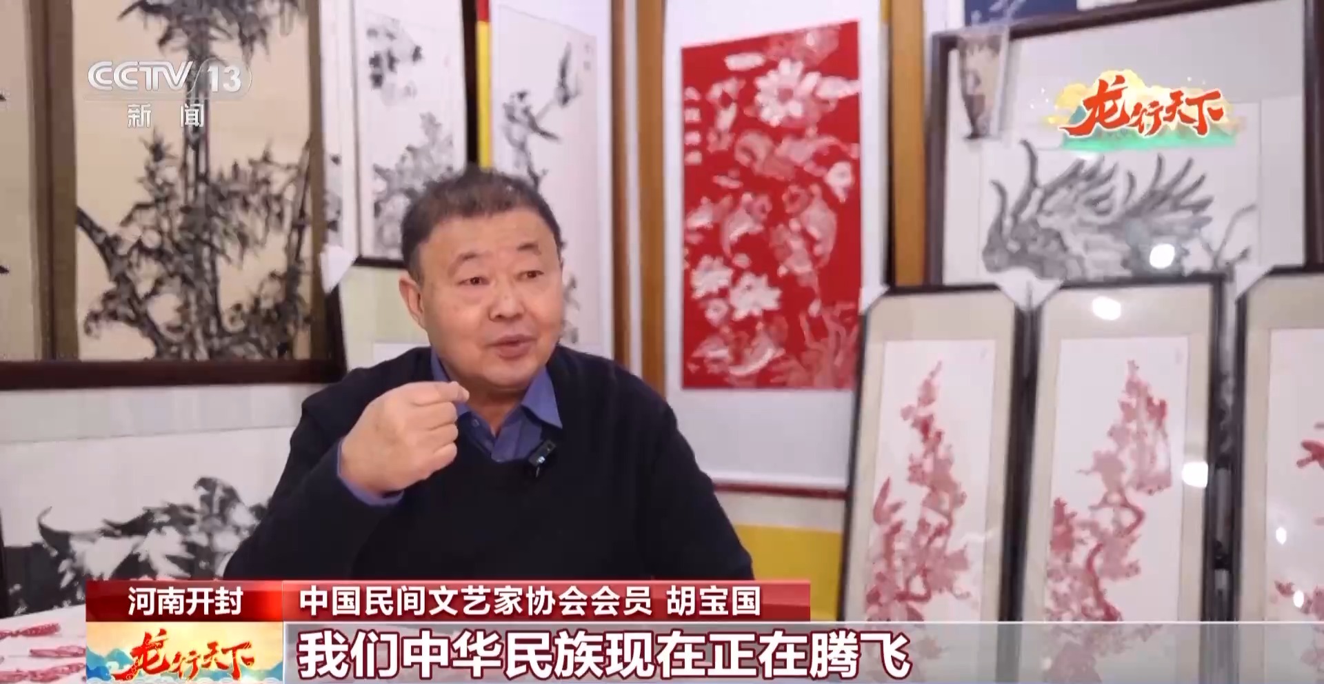 中国民间文艺家协会会员胡宝国:(今年)刚好是龙年,我们中华民族现在正在腾飞,我想可以剪个百龙腾飞。