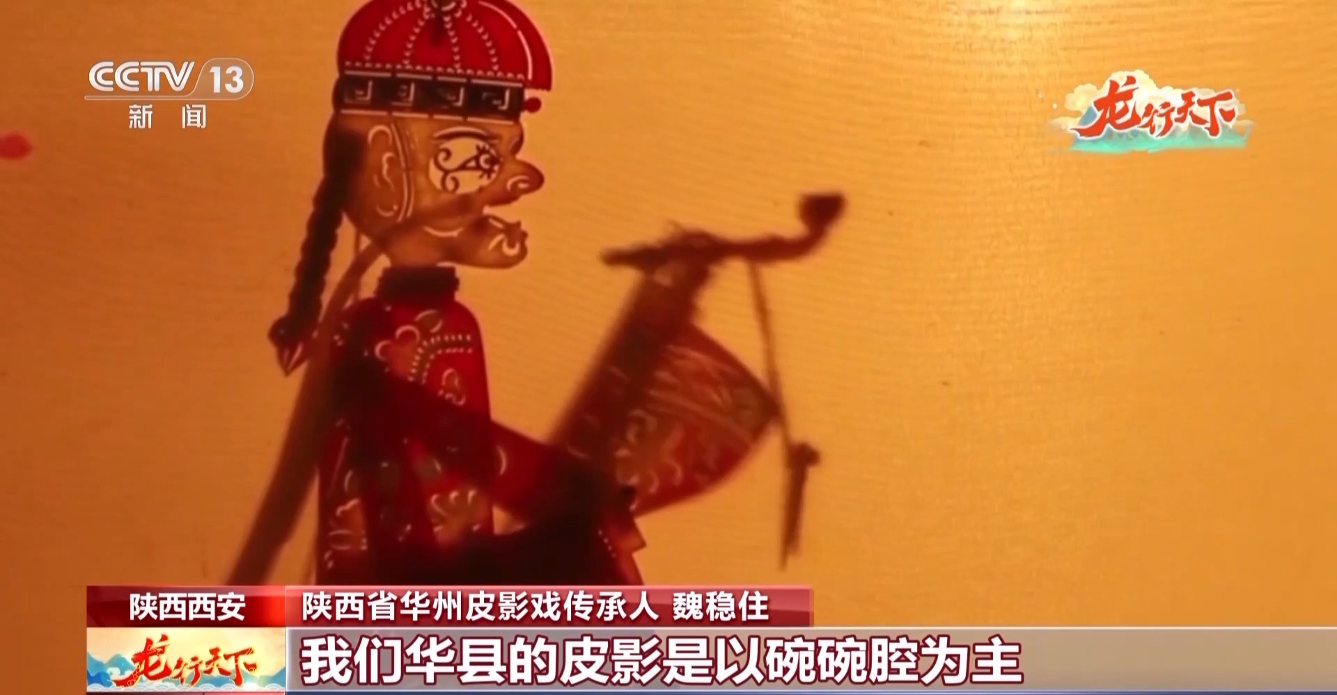 陕西省华州皮影戏传承人魏稳住:我们华县的皮影是以碗碗腔为主,五人忙,我就在这里唱,也要弹月琴、敲手锣、打板,还要敲鼓,生旦净末丑,都要一个人发音。