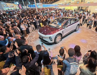 4月23日-25日,第四届全民阅读大会在山西太原举办,本届大会主题为“培育读书风尚 建设文化强国”。图为4月23日,与会人员走进晋阳湖国际会议中心会场。