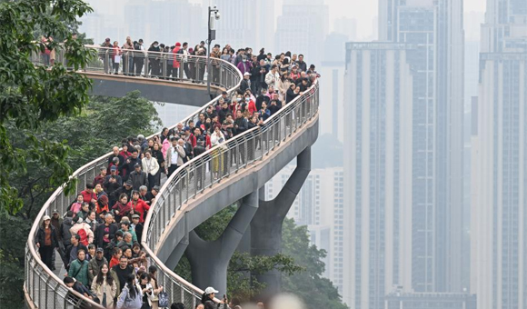 11月24日,人们在重庆半山崖线鹅岭栈桥观光、拍照。