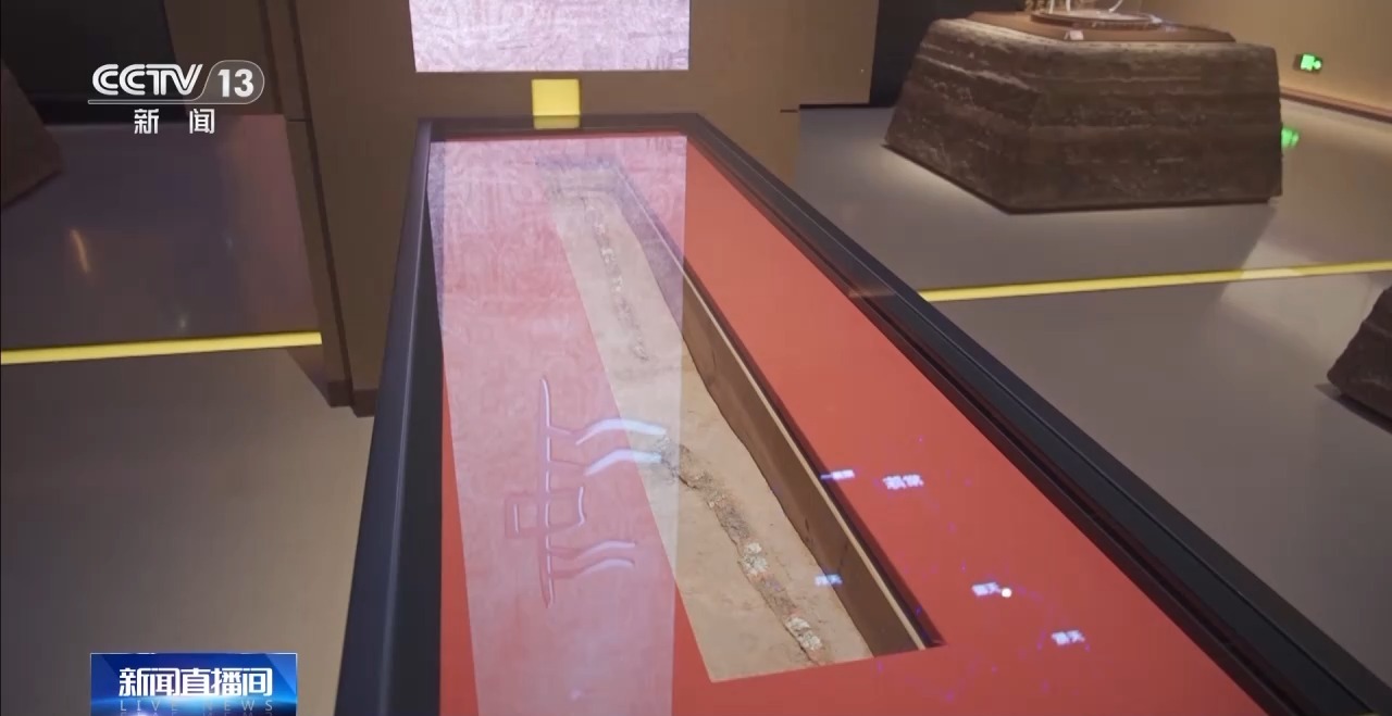 陶寺遗址博物馆讲解员陈英贤:圭尺平放在地面,立表垂直于圭尺形成直角,正午的太阳照射立表投向圭尺产生影长,通过影子的长短来判断当天的节气。夏至当天日影是最短的,冬至的时候日影最长,与观象台也形成了相辅相成的作用。