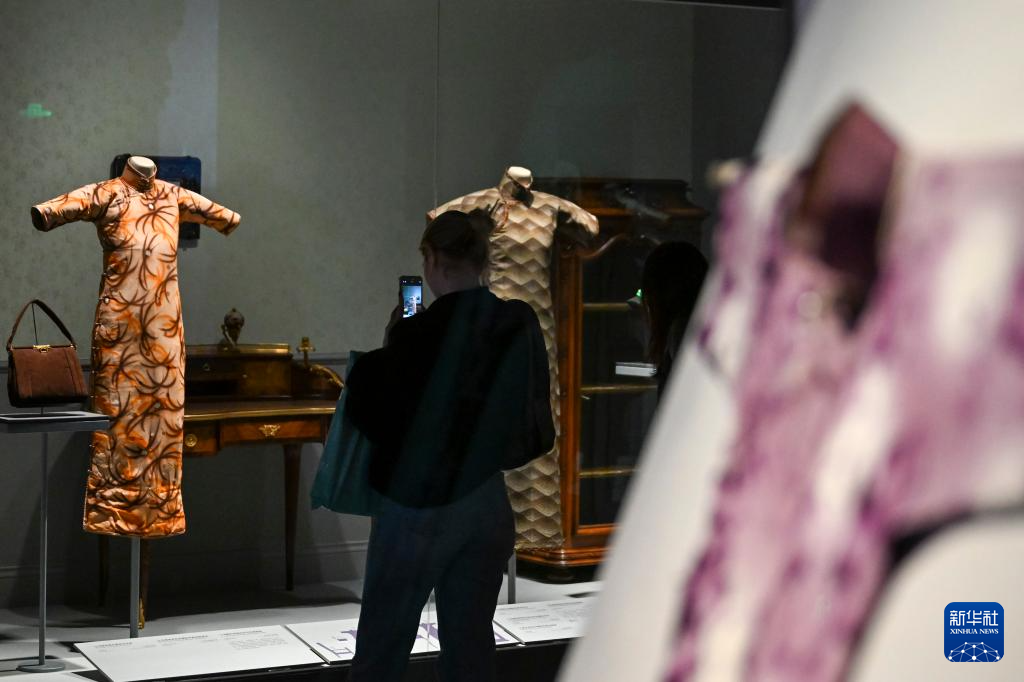 12月22日,观众在“摩登华影:海派旗袍与百年时尚”预展上拍摄展品。