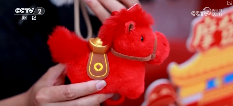 过年不仅要满足味蕾,更要装饰家居、增添趣味。在文创区,国家非物质文化遗产香云纱,被制成精美的铜钱扣、手机包等随身配饰。生肖“小马”和“财神爷”化身成为俏皮的现代文创,吸引了众多市民游客驻足挑选。
