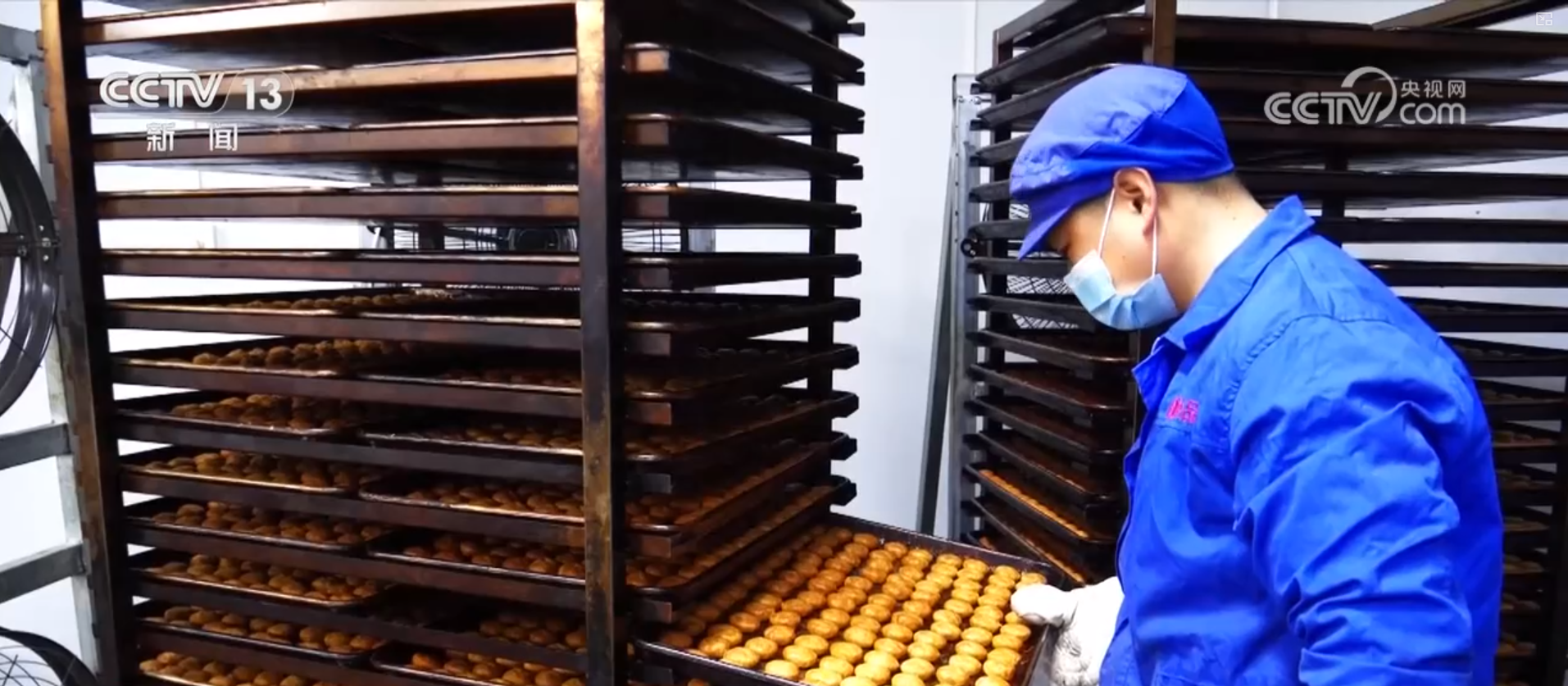 安徽传统特色美食——黄山烧饼也迎来产销旺季。当地加工企业正开足马力赶制生产。