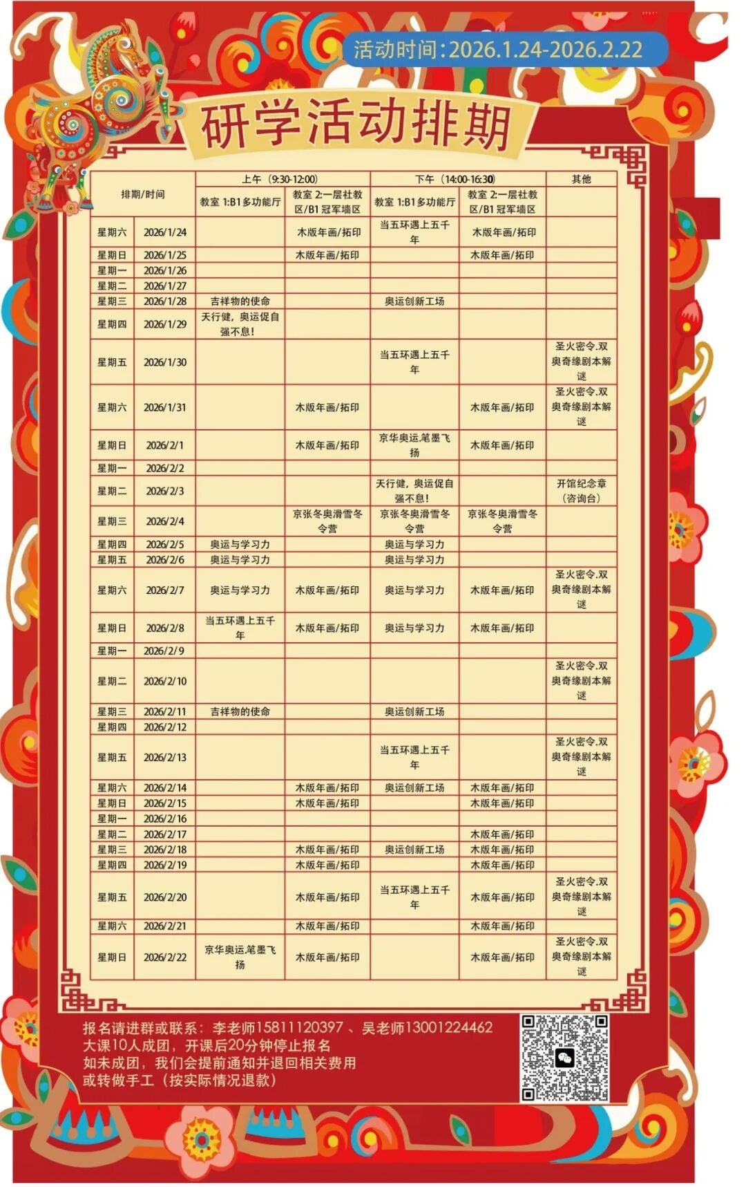 活动期间,同步推出配套研学3课程,左附活动排期表。
