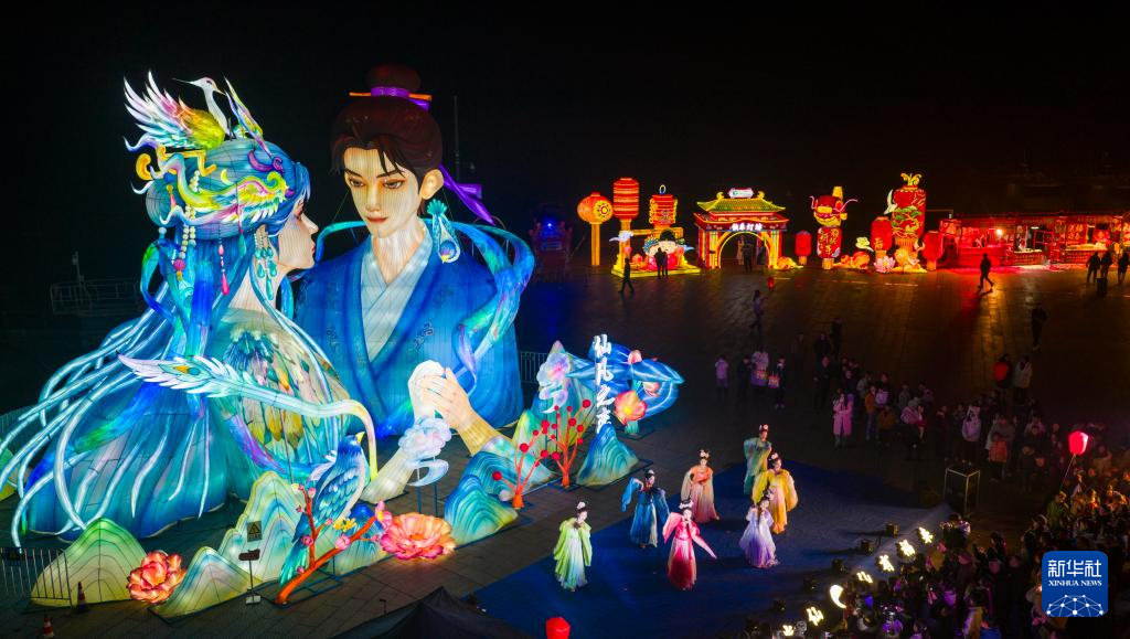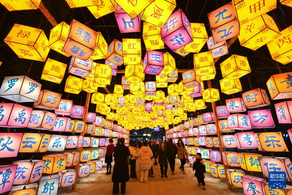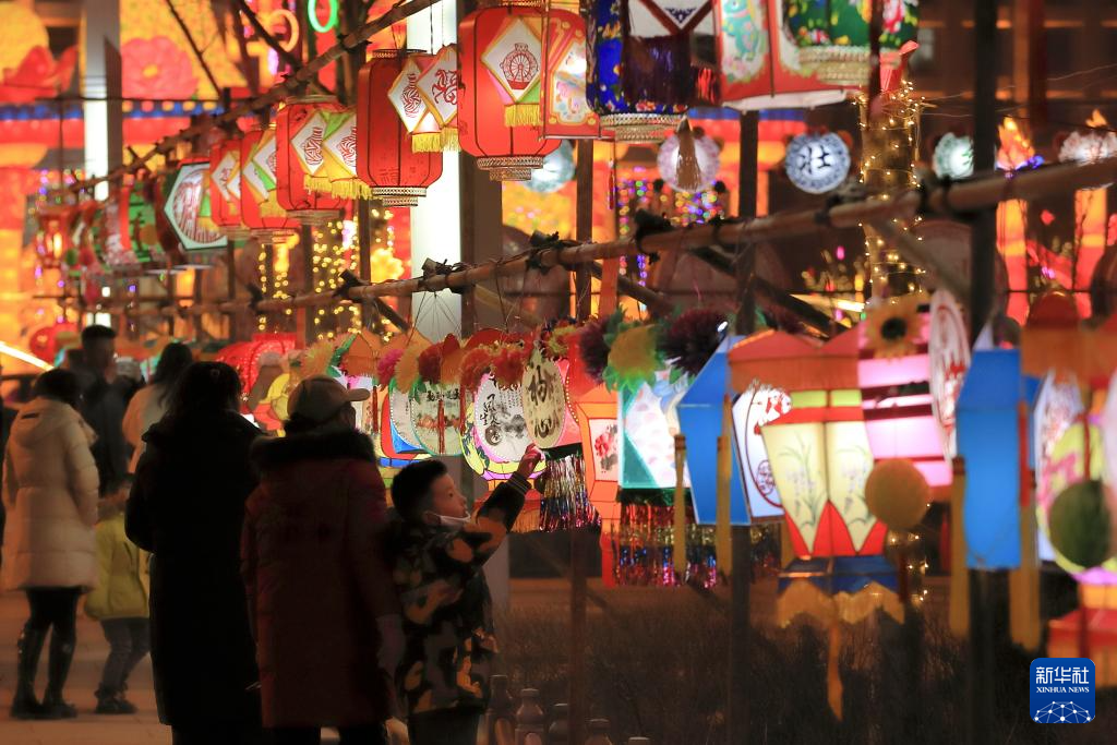 2月11日,市民在甘肃省定西市安定区新时代广场观赏传统手工花灯展览。