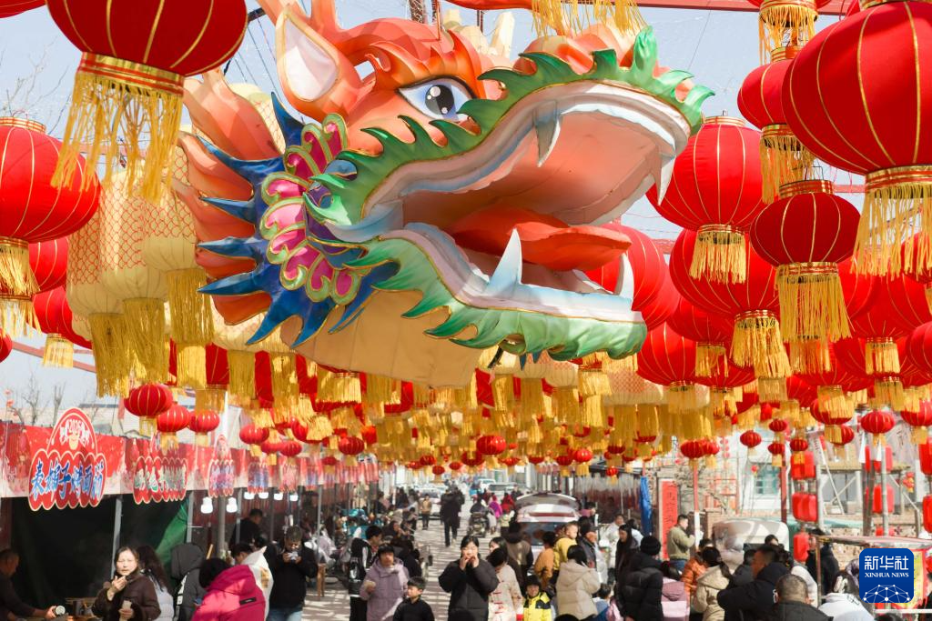 2月12日拍摄的江苏省连云港市赣榆区金山镇美小村年集(无人机照片)。