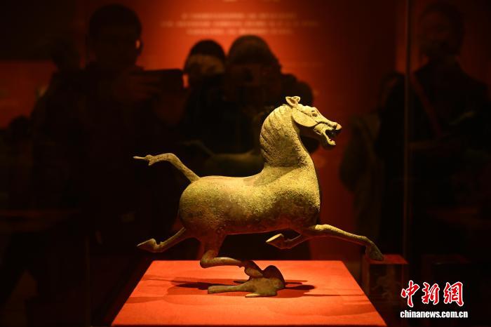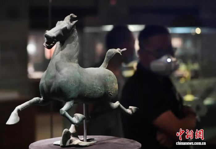 参观者欣赏甘肃省博物馆展出的“铜奔马”真品。中新社记者 杨艳敏摄