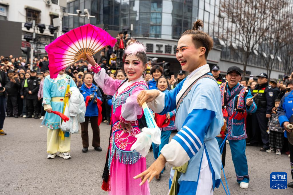 3月3日,以“仙境张家界·骏马踏春闹元宵”为主题的2026年张家界元宵灯会开幕。当地民间文艺队伍在张家界市永定区巡游演出。