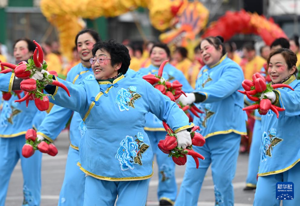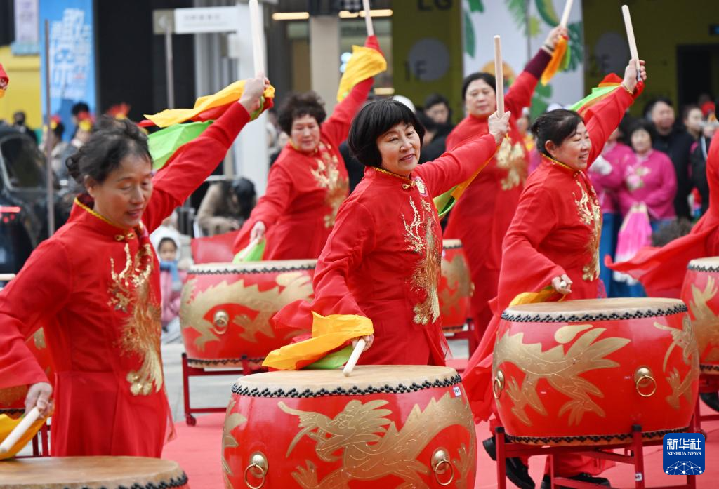 3月3日,青岛西海岸新区举行新春民间艺术表演活动,欢庆元宵佳节。