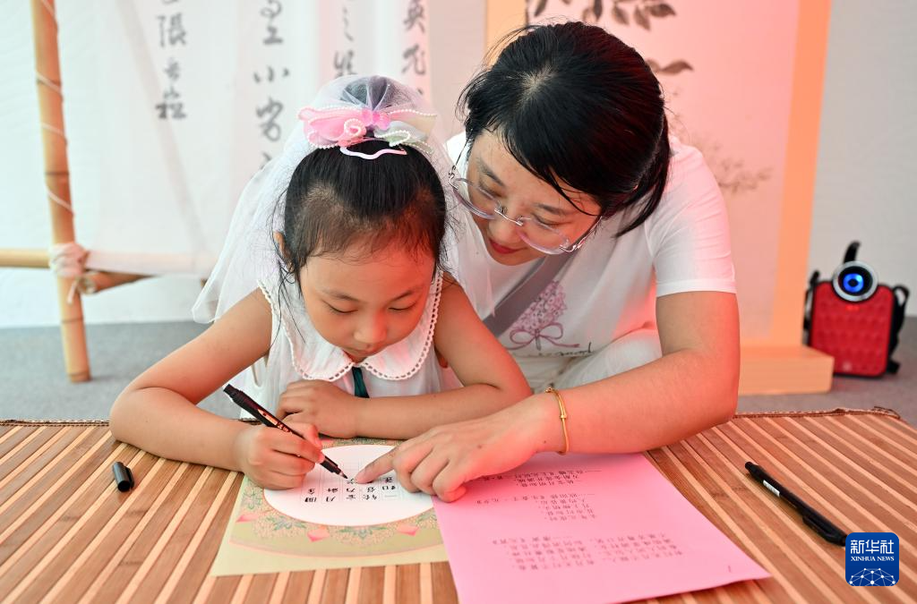 3月3日,在海南省博物馆庆元宵传统民俗社教活动中,小朋友在纸笺上书写元宵诗词。