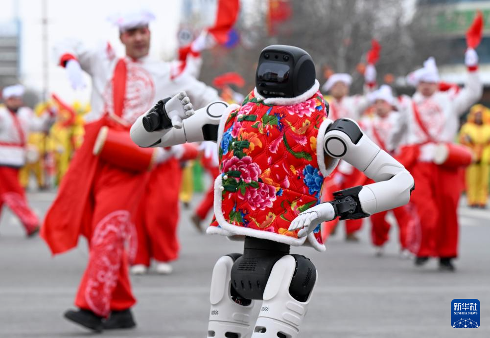 3月3日,以“文润庭州·乐享元宵”为主题的新疆昌吉市非遗社火展演活动在昌吉市启幕,为各族群众送上节日祝福。这是机器人参与社火表演。