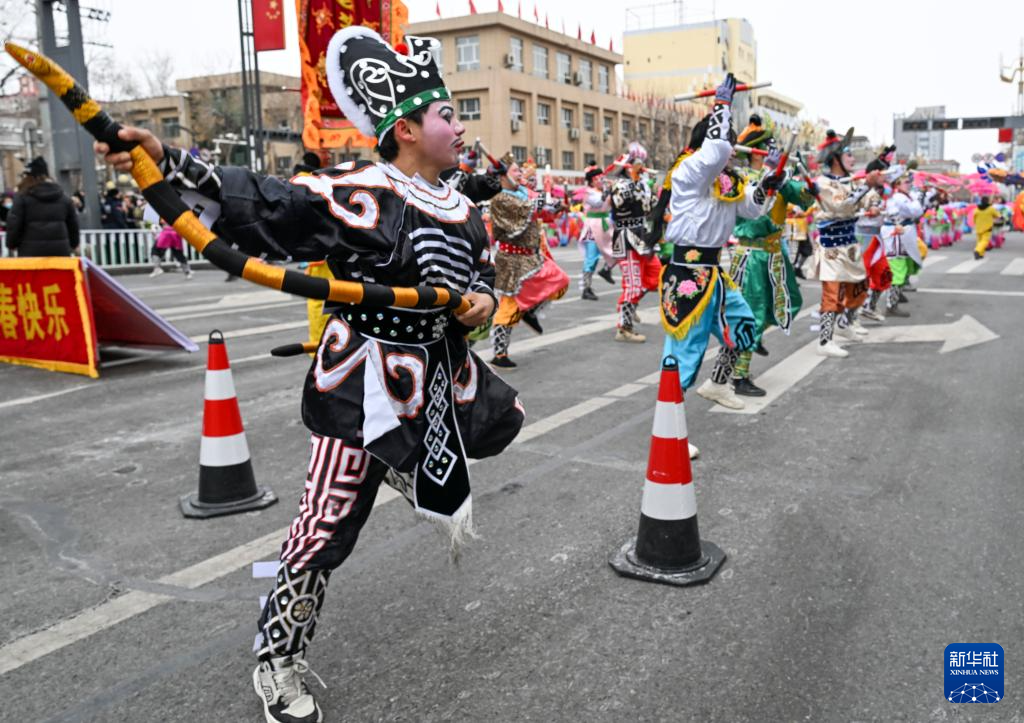 3月3日,以“文润庭州·乐享元宵”为主题的新疆昌吉市非遗社火展演活动在昌吉市启幕,为各族群众送上节日祝福。这是社火队员在表演。