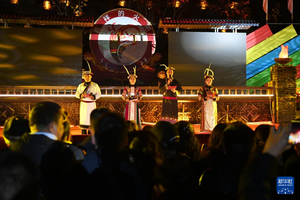 3月3日,在甘肃省陇南市文县铁楼藏族乡草河坝村,当地群众主持《吉祥的火把》主题演绎。