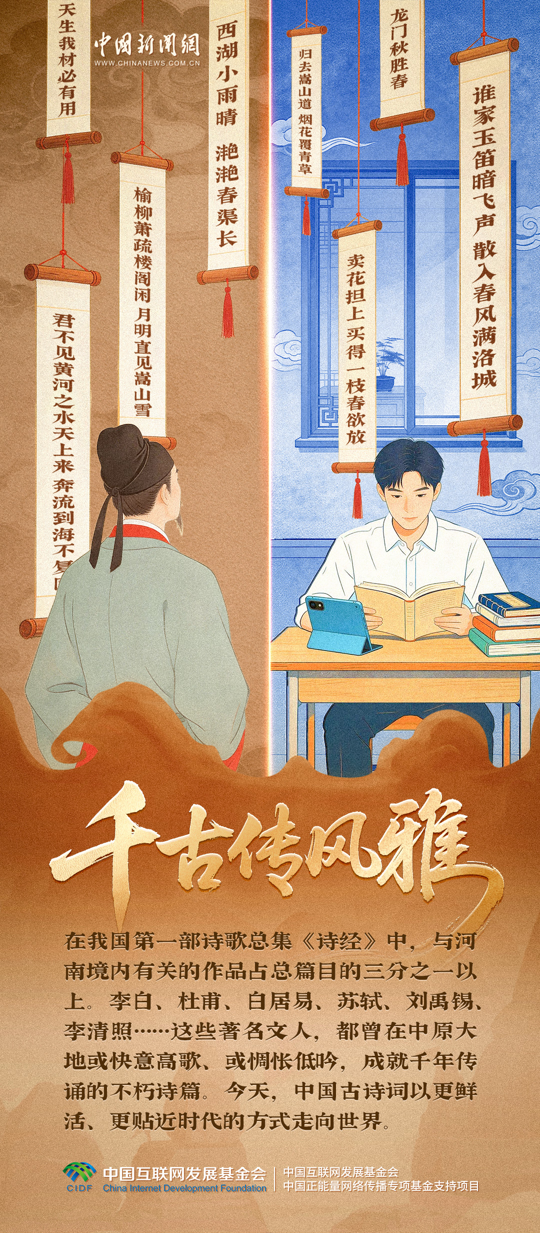 汉字藏韵,诗词传情,典籍载道,书法写意,礼乐润心……这些镌刻在时光里的文化符号,藏着中华文明从未断流的精神密码。当国潮悄然兴起,文博持续升温,非遗不断焕彩,文化奔赴海外,千年传统文化早已融入烟火日常。