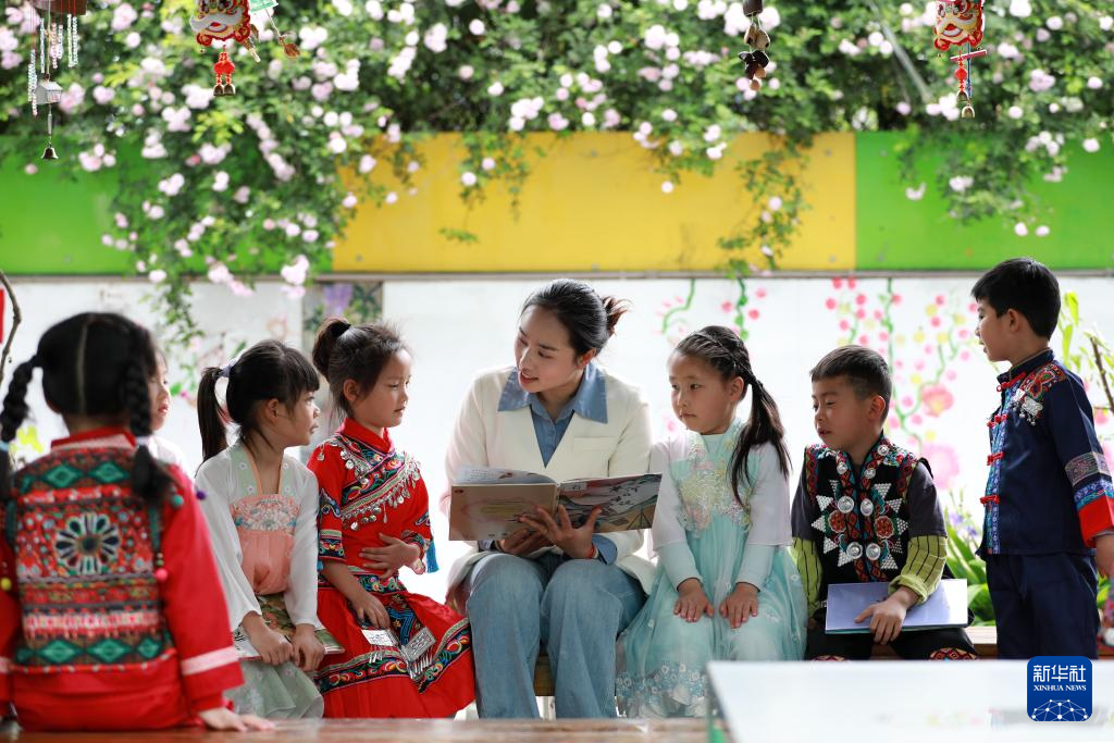 4月23日,贵州省都匀市第一幼儿园的老师给孩子们讲儿童绘本故事。