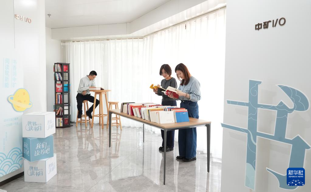 4月23日,在北京举行的中国矿产资源集团“书香润中矿·阅读赋新能”活动上,人们在阅读书籍。