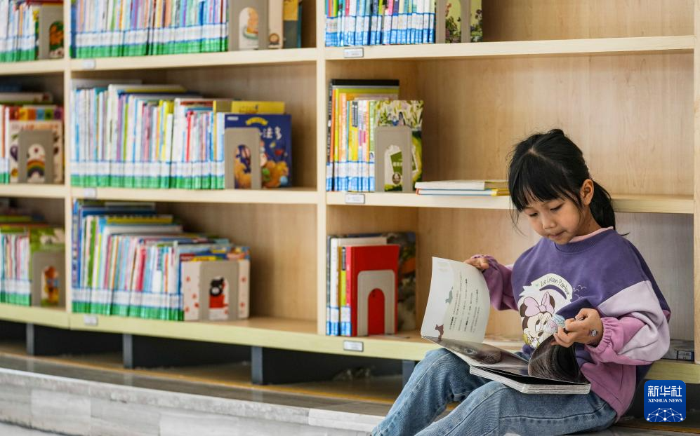 4月23日,贵州省铜仁市玉屏侗族自治县印山民族小学学生在校园书吧阅读书籍。