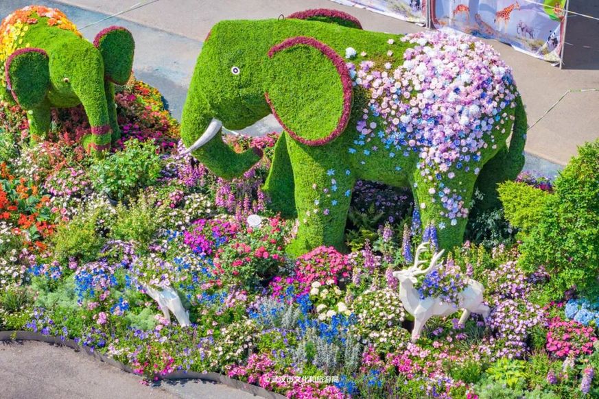 武汉动物园展区、中山公园展区以花艺小景为主。