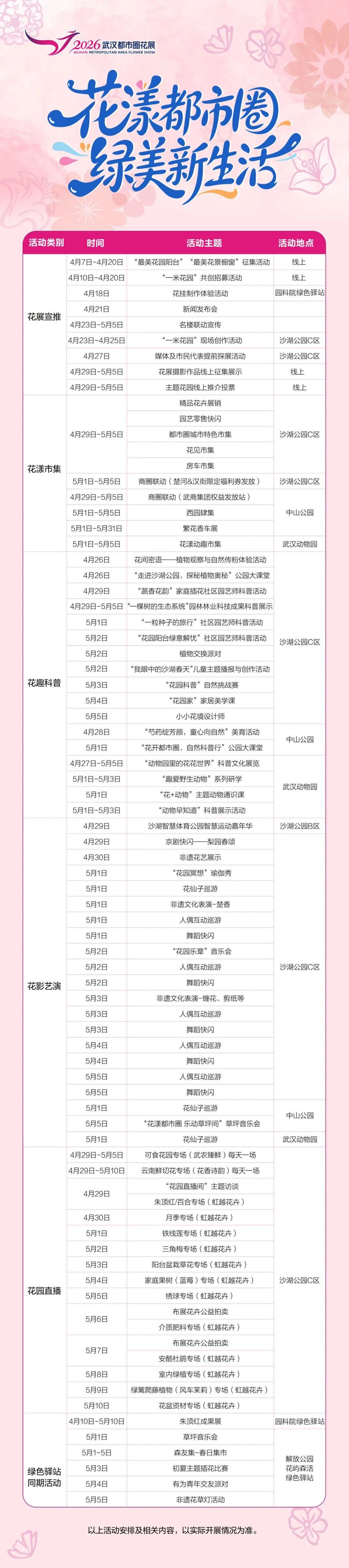 2026武汉都市圈花展期间,武汉市园林和林业局还在各大公园准备了70+特色活动,正适合出门踏春游玩。